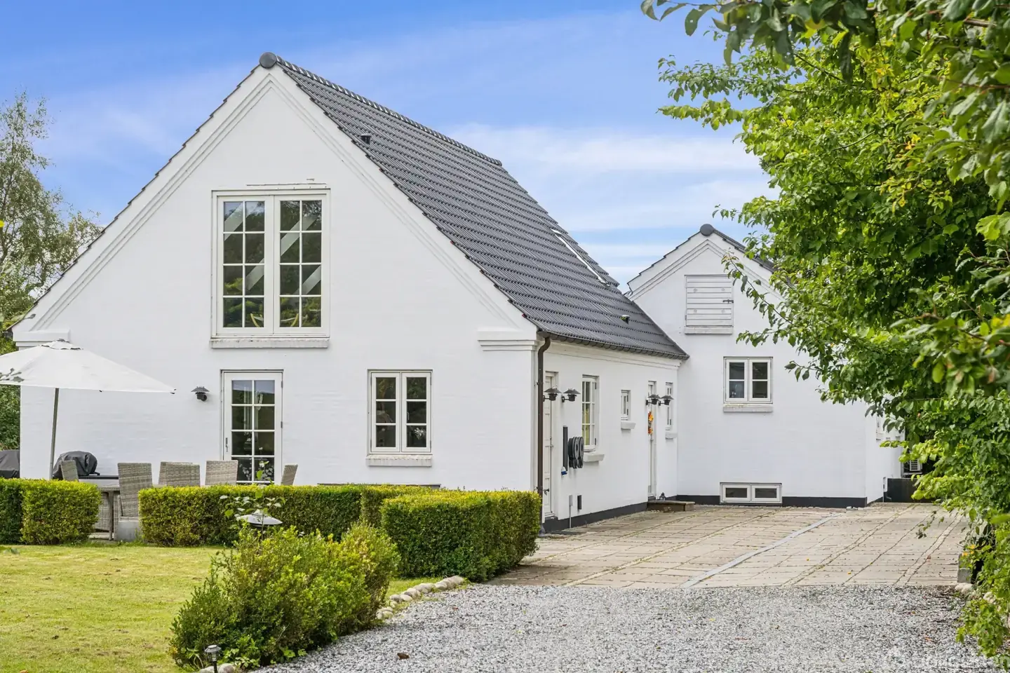 Nær Dageløkke Skov i Humlebæk ligger denne indbydende ejendom, hvor klassisk arkitektur møder moderne komfort. De hvidpudsede facader, det sorte tegltag og de sprossede vinduer signalerer solid håndværksmæssig kvalitet, mens boligens indre fremstår nutidigt, åbent og nøje opdateret. Villaen fra 1958 blev senest gennemrenoveret i 2021-2022, og omkring bebyggelsen på den 2.712 kvadratmeter store grund er haven anlagt med en rig beplantning. Beliggenheden er kendetegnet af landlig og naturskøn idyl