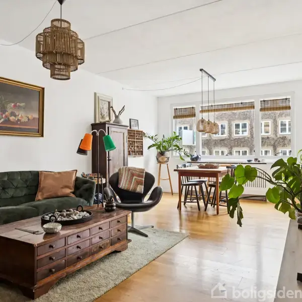 Indretning: Du bydes velkommen i en rummelig entré med god skabs- og opbevaringsplads, som elegant binder lejlighedens rum sammen. Boligen rummer et stort og velholdt badeværelse med både separat bruseniche og badekar. Det stilrene køkken fremstår pænt og funktionelt med opvaskemaskine og har direkte udgang til en stor, sydvendt altan - ideel til solrige dage. Køkkenet ligger i åben forbindelse med den lyse og rummelige stue, som skaber et dejligt opholdsrum med god plads til både spise- og sof
