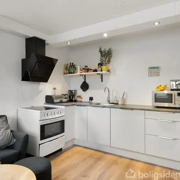 Høj kælder med overraskende mange muligheder – perfekt som delelejlighedDenne indbydende 2-værelses kælderlejlighed ligger højt og lyst og byder på en planløsning, der gør den oplagt som delelejlighed – faktisk føles den næsten som to. Værelserne har hver deres køkken, og til det ene værelse er der etableret en skydedør, som elegant adskiller et disponibelt rum, der i dag benyttes som soveværelse, fra stue/køkken. Lejligheden fremstår velindrettet og komfortabel med gulvvarme i de to værelser, s
