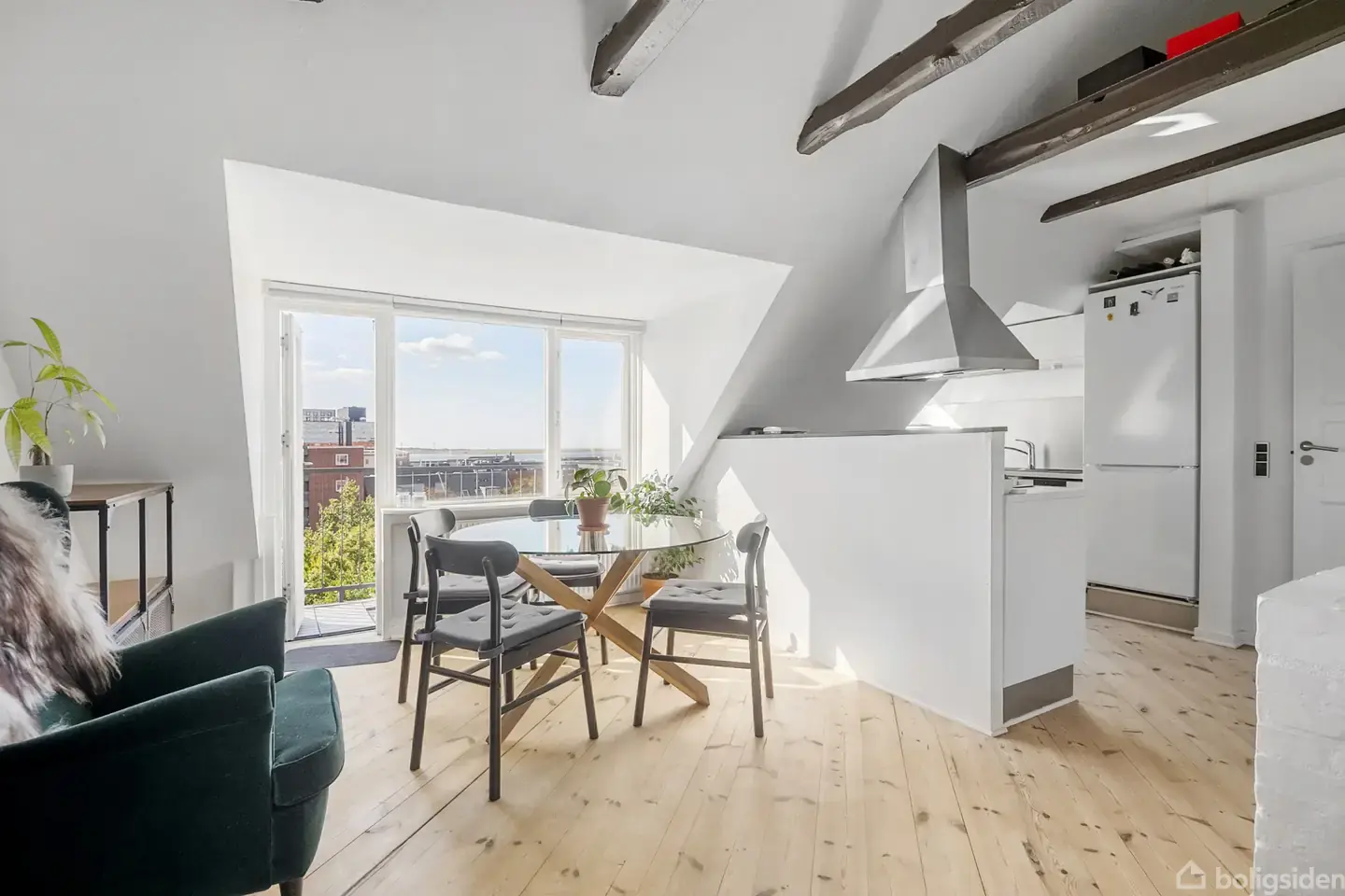 Nybolig Esbjerg byder velkommen til Willemoesgade 46, 4., en lys og indbydende ejerlejlighed placeret øverst i en klassisk ejendom fra 1935. Her får du en bolig, hvor lys, luft og udsigt spiller hovedrollerne – perfekt som base for singler eller par, der ønsker at bo centralt med et særligt kig både over by og havn. Lejligheden er indrettet med en åben forbindelse mellem køkken og stue, der giver et naturligt flow og gode rammer for både samvær og afslapning. De store vinduespartier lukker ma