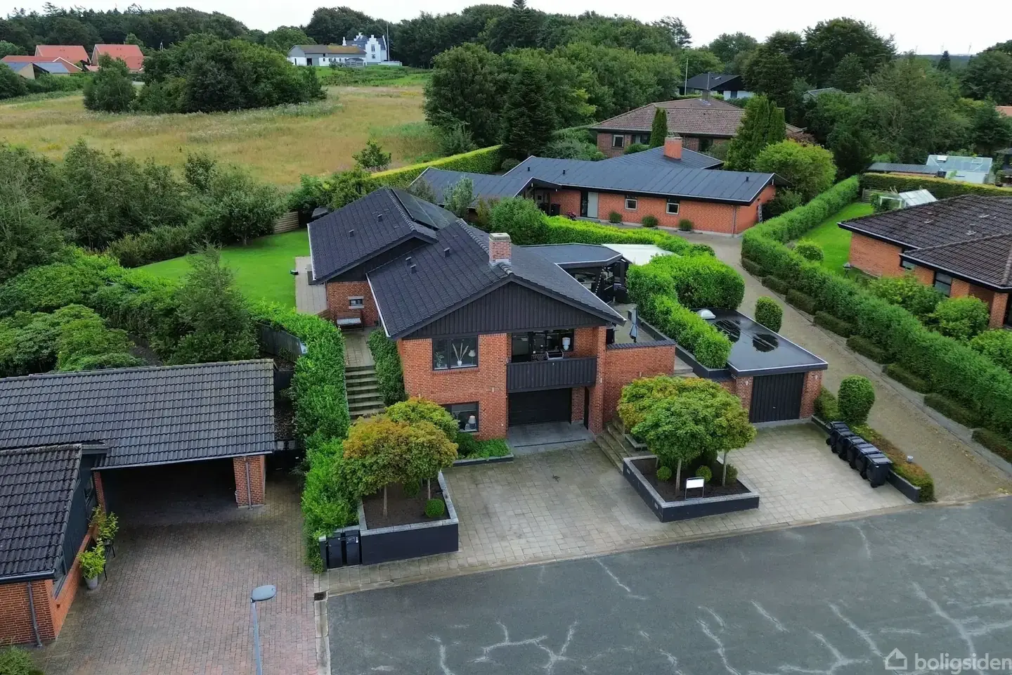 Åbent hus med tilmeldingskrav 3/2 - klik på billede - Spændende og yderst velbeliggende villa med stor integreret garage Højt beliggende i attraktivt og roligt villakvarter i Bønderslev nordby. I cykelafstand til Hedegårdsskolen, børnehave og gymnasie, samt tæt på indkøbsmuligheder, Brønderslev Golfbane, rideskole og idrætsfaciliteter. Spændende villa opført i 1979 med stor integreret garageplads, hvor mulighederne er mange. Villaen har fået monteret et 6 kW solcelleanlæg. Indretning: det rummelige stueplan på rummer fin entre med gæstebadeværelse og ekstra værelse, stort køkken/alrum med JKE-elementer og god spiseplads samt adgang til den store opholdsstue og den hyggelige udestue på 30 m², hvor haven kan tilgås. God værelsesafdeling med soveværelse og to værelser samt moderne badeværelse. På værelserne er fine integrerede skabe med skydelåger. I det 139 m² store kælderplan findes et godt og funktionelt bryggers og hertil gæstetoilet. I kælderen er der ligeledes mulighed for gæsteværelse, kontor eller lign i værelset. Ydermere er der den store garage med to porte, der er klar til pladskrævende aktiviteter. I garagen er desuden opsat varmepumpe. Rundt om villaen er et yderst skønt havemiljø, hvor hyggen er i højsædet. Bl.a. findes flere gode terrassemiljøer, bålplads og et overdækket udekøkken, der inviterere til gode stunder. Haven grænser op til friareal med heste og den høje beliggenhed giver et fint udkig mod Ådalen. Tekniske oplysninger: Tag: Betontagsten Ydervægge: Mursten Vinduer: Trævinduer Varmeanlæg: Fjernvarme + brændeovn + varmepumpe i garage Faktisk fjernvarmeforbrug 2025: 16.400 kr. Oplysninger om Brønderslev Kommune: se - www.bronderslev.dk