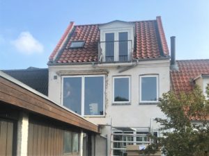 FACADE: Vores hus er pudset, og det ser rigtig godt ud, men det slår revner, og man kan ikke reparere lokalt uden, at det får en nuanceforskel. Det er hele facaden, der skal have en omgang, hver gang der kommer en revne. Det er derfor meget lidt vedligeholdelsesvenligt.