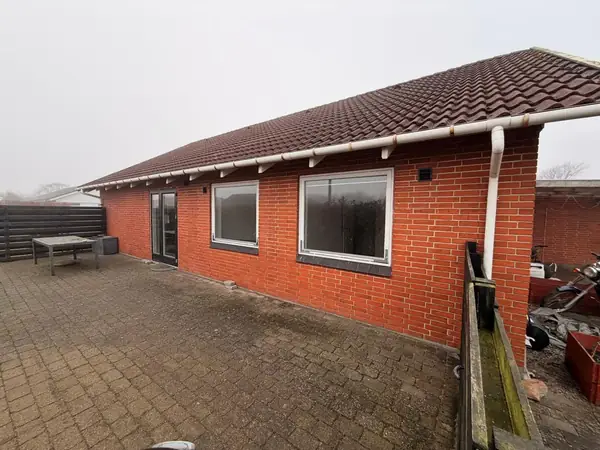 Udendørs er der anlagt fliser omkring huset og i indkørslen samt fliseterrasse i haven. Haven er primært med græs.