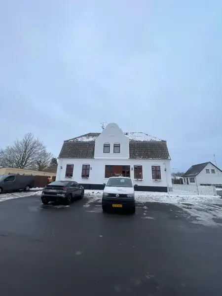 Gulvet er klikgulv. Væggene er hvide. Loftet er i hvide plader.