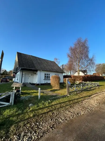 Fra entreen er der adgang til stuen. I stuen er der trælignende vinylgulv, hvide vægge og træloft. Vinduerne er i dårlig stand. Her findes en træpilleovn.